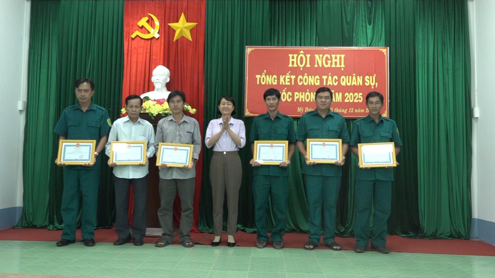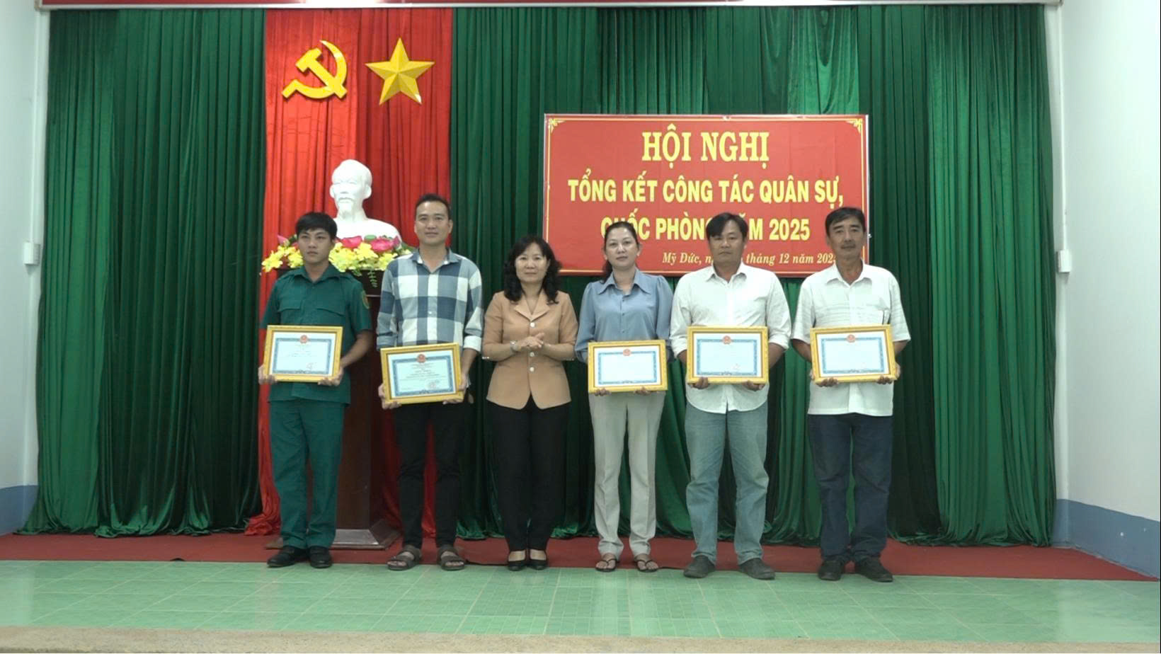 Dịp này, Ủy ban nhân dân xã Mỹ Đức đã khen thưởng 5 tập thể và 15 cá nhân có thành tích xuất sắc trong thực hiện nhiệm vụ quân sự – quốc phòng năm 2025.