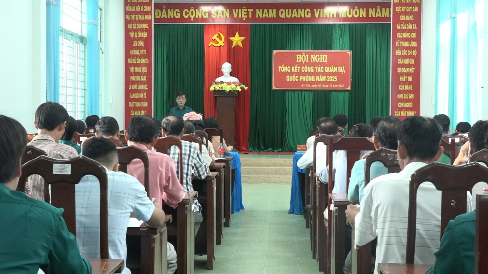 Ngày 05/12/2025, Ban Chỉ huy Quân sự xã Mỹ Đức tổ chức Hội nghị tổng kết công tác quân sự, quốc phòng năm 2025 và triển khai nhiệm vụ năm 2026. Đến dự và chỉ đạo hội nghị có đồng chí Huỳnh Thị Hằng – Bí thư Đảng ủy, Chủ tịch Hội đồng nhân dân xã.