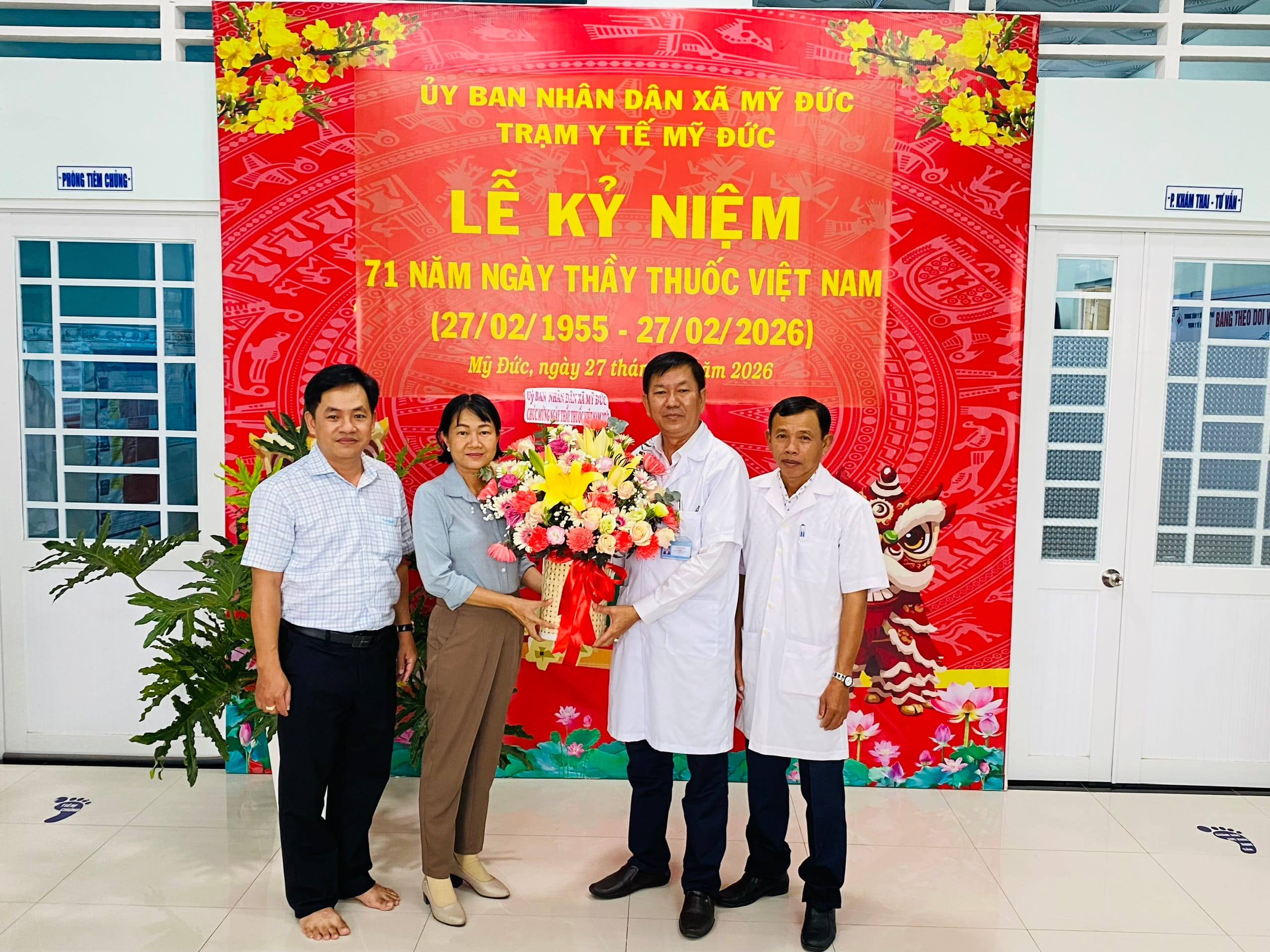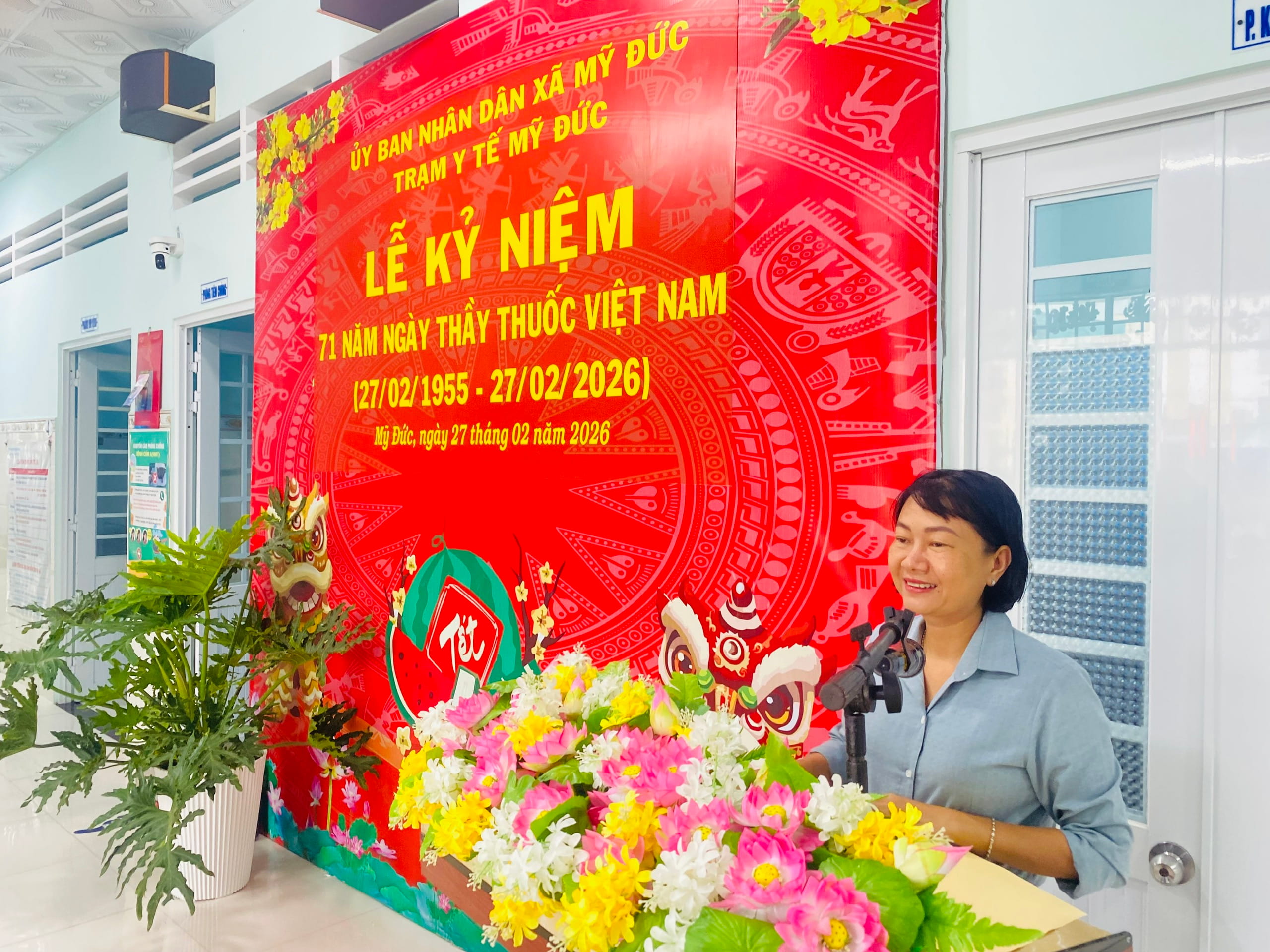 Hòa chung không khí thi đua sôi nổi của ngành Y tế cả nước hướng tới kỷ niệm 71 năm Ngày Thầy thuốc Việt Nam (27/02/1955 – 27/02/2026), chiều ngày 27/02/2026, Trạm Y tế xã Mỹ Đức long trọng tổ chức Lễ kỷ niệm 71 năm Ngày Thầy thuốc Việt Nam. Ông Lê Huỳnh Hải – Giám đốc Trạm Y tế xã Mỹ Đức chủ trì buổi lễ.